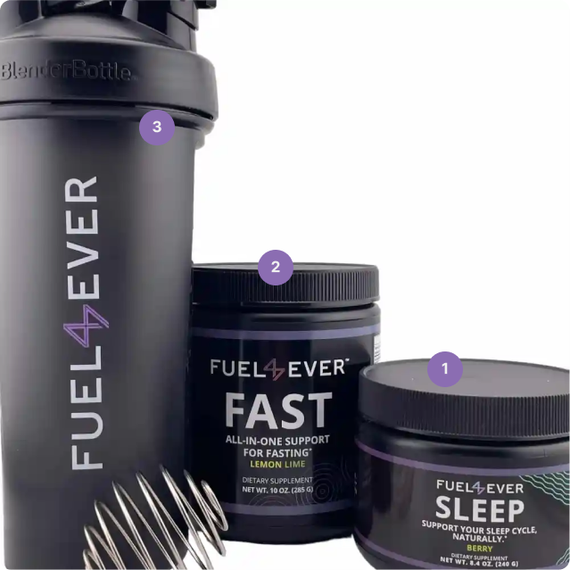 Improve sleep quality with SLEEP, support your fasting routine with FAST, and mix it all up effortlessly with the Fuel 4 Ever BlenderBottle®—your ultimate wellness companion.